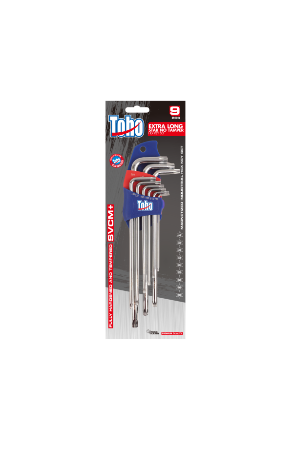 Toho Long Star No Tamper Hex Key Set are designed to withstand the toughest jobsite conditions and are engineered to exceed the expectations of automotive, do-it-yourself, electrician, general contractor, masonry, mechanic, metalworker, plumber, and more. All Toho Professional Tools are designed to meet or exceed ANSI specifications.
