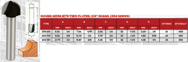 Mata Router Round Nose Bits Toho